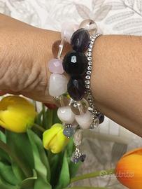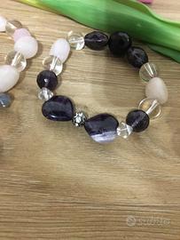 Bellissimi braccialetti fatti a mano del brand Pepy & Menta Luxury perfetti per aggiungere un tocco di stile al tuo look! Sono due braccialetti, uno con sfumature rosa e l'altro con sfumature viola. Ogni braccialetto è unico e presenta una combinazione di pietre delicate e luminose. - Realizzati con cura e attenzione ai dettagli. - Articolo nuovo, mai indossato. - Perfetti come regalo.