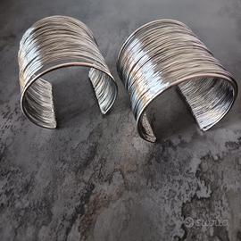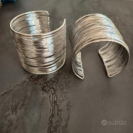 Elegante coppia di bracciali rigidi a polsino, realizzati con un design a molla multilinea color argento brillantissimo. Molto flessibili e comodi da indossare, si adattano a qualsiasi polso. Nuovi, perfetti per dare un tocco di luce. Spedizione con TuttoSubito.