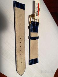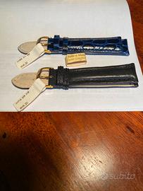 N 2 cinturini Morellato fibia dorata, di cui ; uno colore Blu pelle stampata cocco leggermente bombato , l’altro colore nero opaco in cuoio longhorn con bombatura al centro, entrambi misura 20mm.