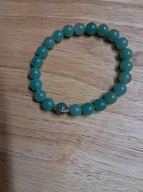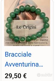 1 braccialetto Avventurina marchio Le Origini L'avventurina è nota nella cristalloterapia come la pietra del benessere, della fortuna e dell'ottimismo. Associata al chakra del cuore, favorisce l'equilibrio emotivo, calma le ansie, riduce lo stress e stimola la crescita personale e la gioia. Sul piano fisico, viene usata per pelle, occhi e metabolismo. 1 braccialetto Amazzonite L'amazzonite è spesso associata a proprietà calmanti e all'equilibrio emotivo. Viene frequentemente collegata al chakra della gola e al chakra del cuore, favorendo l'autodeterminazione e la verità.