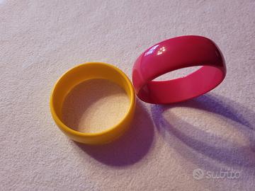 Coppia di bracciali giallo e fucsia in plastica (diametro circa 6,5 cm), indossati pochissimo quindi molto ben conservati, sono perfetti per l'estate e per dare allegria ad ogni outfit.