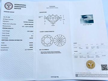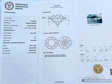 Diamanti naturali valutati da IGI. Diamante 1 Forma: Rotondo Brillante Peso: 1.02CT Colore: I Chiarezza: SI2 Eccellente Molto bene Simmetria: Molto buono Fluorescenza: molto lieve Laser Inscription IGI: 722533438 Diamante 2 Forma: Rotondo Brillante Peso: 0.99CT Colore: I Chiarezza: SI2 Taglio: Buono Buono Simmetria: Buono Nessuna fluorescenza Laser Inscription IGI: 722533436 Prezzo riferito ad un singolo pezzo Visibili in negozio di orifeceria , possibilità di creare la montatura a piacere . Per il pagamento è accettato solo bonifico bancario o bonifico bancario istantaneo nel caso della compravendita in negozio No spedizioni contrassegno No assegni circolari Prima di qualsiasi spedizione deve essere effettuato il pagamento