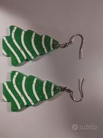 Coppia di orecchini ad albero di Natale verde, nuovi e mai usati
