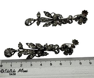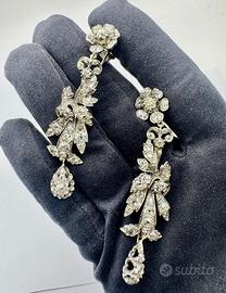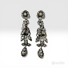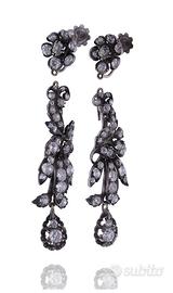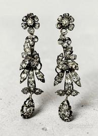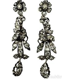 Paio di orecchini scomponibili seconda metà dell’800 in argento, parte di oro 750 e parte di oro basso titolo,peso grammi 19,30 con incastonati diamanti taglio vecchio del peso totale di 10,00 carati colore J-L, purezza VS-SI spedizione tracciata e assicurata