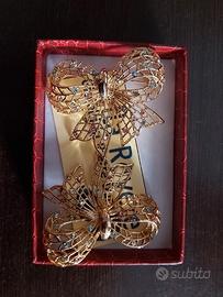 Coppia di spille Della Rovere dorate con pietre dure incastonate. Mai usate e complete di scatola regalo