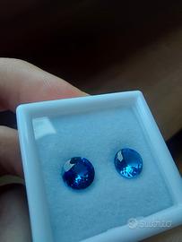 Vendo questa bellissima coppia di tanzaniti naturali di buonissimo taglio e colore, perfetta per degli orecchini in oro di qualità. Dimensioni: 6 mm Peso 1.795 carati Provenienza: Merelani Hills (Tanzania) Trattamento: riscaldamento