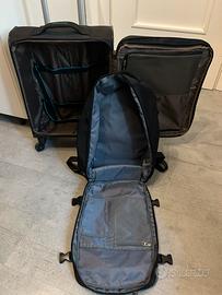 Coppia di valigie, bagaglio a mano, più zaino