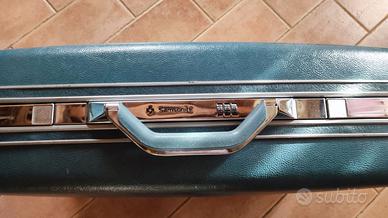 Coppia di valige Samsonite in buono stato, esterno con segni di usura. La valigia grande ha ruote e maniglia. Si ripongono una all'interno dell'altra. Misure65x51x20 e 58x45x18
