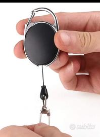 Vendo 2 Pratici moschettoni con cordino retrattile, ideale per agganciare chiavi o badge.