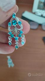 Orecchini pendenti con strass colore azzurro bigiotteria