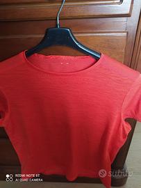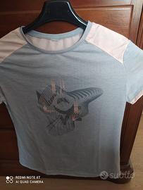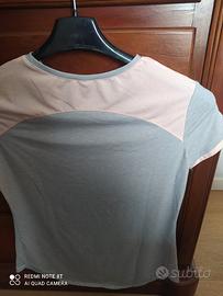 Coppia t-shirt ragazza 10-12 anni in tessuto tecnico, come nuove, sulle spalle entrambe hanno un tessuto microforato ottimo per le attività sportive
