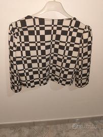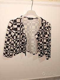 Copri spalle bianco e nero, perfetto per aggiungere un tocco di eleganza al tuo look. Comodo e facile da abbinare per qualsiasi occasione!