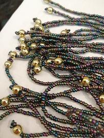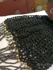 Copricapo per balli nero maglina con Perline colorate e palline dorate, fatto a mano, molto particolare. Consegna a mano Roma zona garbatella