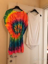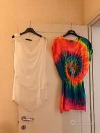 Bellissimi copricostume, perfetti per l'estate! Sono due: uno bianco, leggero e arioso, e uno multicolor m. - Il copricostume bianco ha un dettaglio floreale. - Il copricostume multicolor ha una vestibilità comoda. Un copricostume bianco Sandro Ferrone, taglia M, 70%viscosa, 30% seta, mai messo. Un copricostume fantasia, maui, starlet michaels, 100% cotone, mai messo, taglia unica.