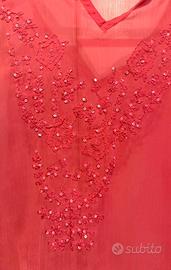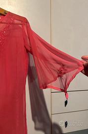 Elegante copricostume stile vedo-nonvedo , decorato a mano con cura. - Tessuto leggero e trasparente. - Dettagli di perline sul collo e sull'orlo. - Maniche a campana. - Design unico e artigianale.
