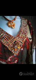Bellissimo caftano o copricostume con ricca passamaneria sullo scollo.