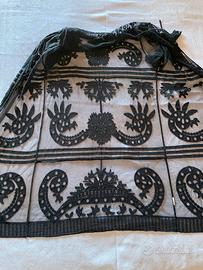 Copricostume kimono nero in pizzo con decorazioni a rilievo Laccetti per chiusura in vita Maniche corte Lunghezza: 110 cm. Taglia: Media (44/46)