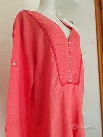 indossato pochissimo, in perfette condizioni, copricostume zara, colore corallo, Tg XL, misto lino, etichetta mancante, maniche lunghe accorciabili
