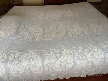 Vendo per mancato utilizzo bellissimo copriletto bianco mai usato lavorato a filet in cotone pregiatissimo sottile.