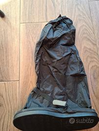 Copriscarpe Tucano Urbano per moto, numero 46 (calzata numero 44/45), gambale in nylon, cuciture nastrate, suola in gomma, catarifrangenti posteriori e su fascetta elastica a chiusura della tomaia, elastico alto al polpaccio e fascia in velcro alta 5 cm, borsa contenitrice con velcro di chiusura