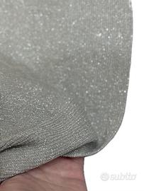 Materiale: Mix pregiato e leggero (75% Rayon, 16% Poliestere, 9% Metallico) che garantisce una caduta fluida e non punge sulla pelle.