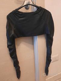 Coprispalle donna/ragazza nero, Maniche lunghe arricciate. 95% poliester, 5% elastan. Allacciatura con fibbia. No difetti. Taglia S.