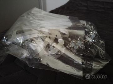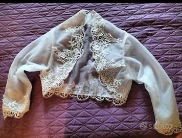 Vendo coprispalle da sposa mai usato xké non è servito, prezzo €10. Vendo anche coroncina per capelli da sposa anche questa mai usata xké ho cambiato pettinatura; comprata in un negozio da