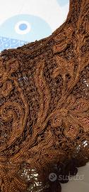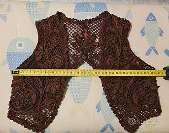 Coprispalle gilet pizzo marrone corto. Fatto a mano. Misure visibili in foto. Mai indossato.