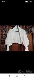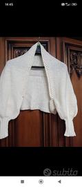 Coprispalle lavorato a mano alta qualità e manifattura in morbida lana, caldo e comodo, color beige chiaro, nuovo, mai utilizzato, TAGLIA UNICA.