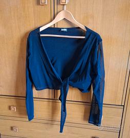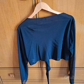 Coprispalle nero linea curvy di Sandro Ferrone. Voile doppiato su schiena e seno e singolo per le maniche, con effetto di trasparenza differenziato. Taglia M. Usato pochissimo, nessun difetto.
