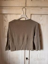 Il coprispalle è di un tessuto leggero e luccicante, presenta un’unica chiusura con il bottone sul davanti