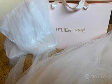 Coprispalle sposa in tulle colore bianco seta, come nelle foto visibili sul sito ufficiale di Atelier Eme’. Acquistato presso Atelier Eme’ di Roma nel dicembre 2023, mai usato. La stola è ancora nella sua confezione originale. Prezzo di vendita sul sito Atelier Eme’: 350 euro, vendo a 150 euro.