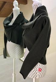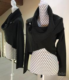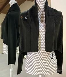 Vendo coprispalle in lana (malglia rasata e a coste), col.verde bosco, sprovvisto di etichetta taglie, in quanto capo campione, veste una tg42. La sua particolare costruzione,senza cucitura, veste una larghezza spalle anatomica di cm39, lunghezza maniche da attaccatura al giro cm 62, lunghezza sulla meta’ dietro da attaccatura costina scollo compresa costina al fondo cm65, larghezza torace dietro sull’attaccatura della costina cm 39 da giro manica dx a giro manica sx (maglia a riposo). Ulteriori dettagli se richiesti.