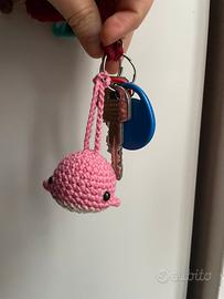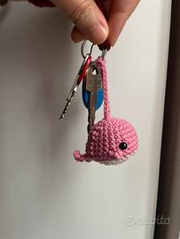 Corallo è una balenina realizzata a mano all’uncinetto con filati di cotone. Si puó usare come portachiavi o charm per borse