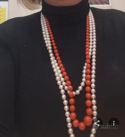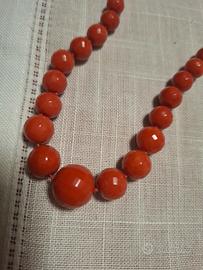 bellissima collana in corallo rosso salmone sfaccettato senza chiusura