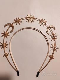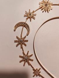 Corona per capelli con stelle e luna, ideale per feste o carnevale. Misure esterne H 21 cm - L 20 cm Cerchio interno L 12 cm Usata pochissimo, come nuova