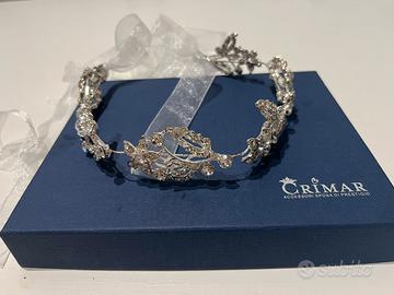 Coroncina/tiara di alta qualita’ con cristalli e strass per acconciature da sposa, damigella, prima comunione. Mai usata, ancora nella confezione originale, marchio Crimar. Acquistata a 150,00€ , vendo a 90,00€