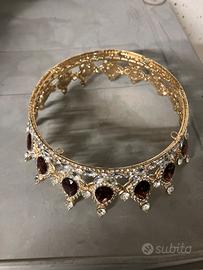 Corone, accessorio per capelli, tiara rotonda per acconciature da sposa e damigella d'onore e festa della mamma Materiale ferro e gemme in vetro