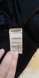 Corpetto elasticizzato nero, con pizzo e spalline rosa pallido. Cerniera laterale con gancetto. Taglia 2.