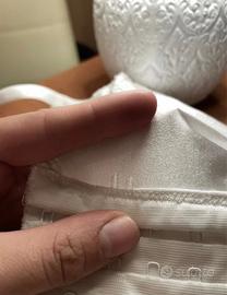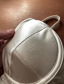 Corsetto bianco con spalline regolabili. Segni d'usura presenti sul retro del top e sulla zona delle coppe. Vestibilità molto aderente .