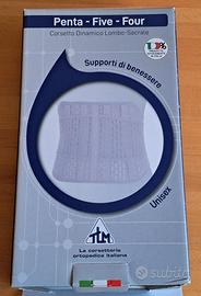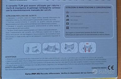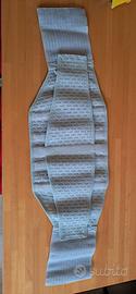 Si tratta di un corsetto elastico prodotto da TLM srl per la zona lombo sacrale, misura 80 cm di larghezza per 24 cm di altezza. E' stato usato poco. Per chi soffre di mal di schiena offre un ottimo contenimento e poco fastidio una volta indossato. Lavabile semplicemente con sapone di marsiglia