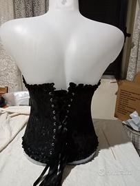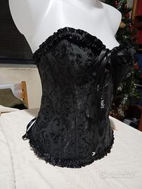 Corsetto in stile Vittoriano con merletti rifiniture ondulate e nastro in raso stringente avanti e dietro , taglia M .