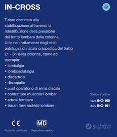 Tutore della FGP destinato alla stabilizzazione attraverso la ridistribuzione della pressione del tratto lombare della colonna. Utile nel trattamento degli stati patologici di natura ortopedica del tratto L1 - S1 della colonna, come ad esempio: