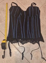 Elegante, sensuale ed importante corsetto da donna nero a bustino in poliestere. Bustino regolabile con file di ganci sulla schiena. Stupendo da indossarsi sotto ad una giacca o ad un abito. Un articolo di lingerie davvero di qualità elevata, con reggicalze.