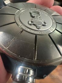 Corum Admiral’s Cup Competition – Full Set – Revisionato In vendita splendido Corum Admiral’s Cup Competition, modello iconico della maison svizzera, riconoscibile per la caratteristica cassa dodecagonale e il quadrante con bandiere nautiche. 🟢 Condizioni: Orologio in ottime condizioni generali, con normali segni di utilizzo ma perfettamente conservato. Appena revisionato (2022) con documentazione (Maison Raggi), funzionamento impeccabile. 🟢 Corredo completo (Full Set): •Scatola originale Corum •Garanzia internazionale •Certificato di cronometro •Manuali •Tag originale Corum •Documento revisione recente 🟢 Caratteristiche principali: •Movimento automatico •Datario •Quadrante blu con dettagli nautici •Cassa in acciaio con design Admiral’s Cup •Cinturino in gomma originale Corum •Corona personalizzata con logo 🟢 Plus importante: Revisione completa già effettuata → zero spese da sostenere a breve, pronto all’uso.