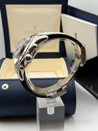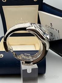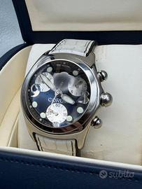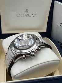 Proponiamo un iconico Corum Bubble Chronograph al quarzo, orologio svizzero dal design deciso e immediatamente riconoscibile, celebre per la sua cassa oversize e il caratteristico vetro zaffiro bombato.