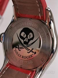 Vendo Corum Bubble Jolly Roger in condizioni come nuovo, completo di scatola e garanzia e doppio cinturino in gomma rivestito in coccodrillo nero e rosso.