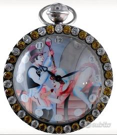 Vintage ma Nuovo mai utilizzato completo di scatola e garanzia: VENDO O PERMUTO SCAMBIO Raro orologio CORUM Bubble fine anni 90 Collector series "THE HOURS OF LOVE" Swiss Made serie limitata e numerata a 500 esemplari (nr.204 su 500) Quadrante smaltato rappresentante scena erotica con "automa" animato ore 8 (il "fallo" segna ed intervalla i secondi) Si tratta di CORUM Bubble in versione desk clock (da tavolo). Introvabile orologio di forma sferica (Erotic Ball Desk Clock), con cassa in argento e cristallo, lavorata a"bolla' Modello da collezione Lunetta esterna del quadrante tempestata da Cristalli Swarovski colorati. Corona carica al 12 Movimento Corum di manifattura Swiss Made a carica manuale visibile dall'esterno e numerata NUOVO-MAI USATO COMPLETO D SCATOLA E DOCUMENTI ORIGINAL vendo o permuto/scambio con orologi da polso.