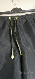 Costume da bagno uomo EA7 Emporio Armani, colore nero. Modello corto con vestibilità comoda (non attillata), stile pantaloncino. Vita elasticizzata con laccetto regolabile a contrasto verde fluo. Dotato di tasche laterali. Logo EA7 tono su tono sulla gamba. Capo in ottime condizioni, pari al nuovo