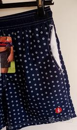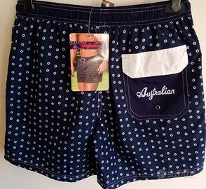 Costume da bagno Australian con fantasia a pois. - Fantasia a pois bianchi su sfondo blu. - Tasche laterali. - Coulisse in vita.